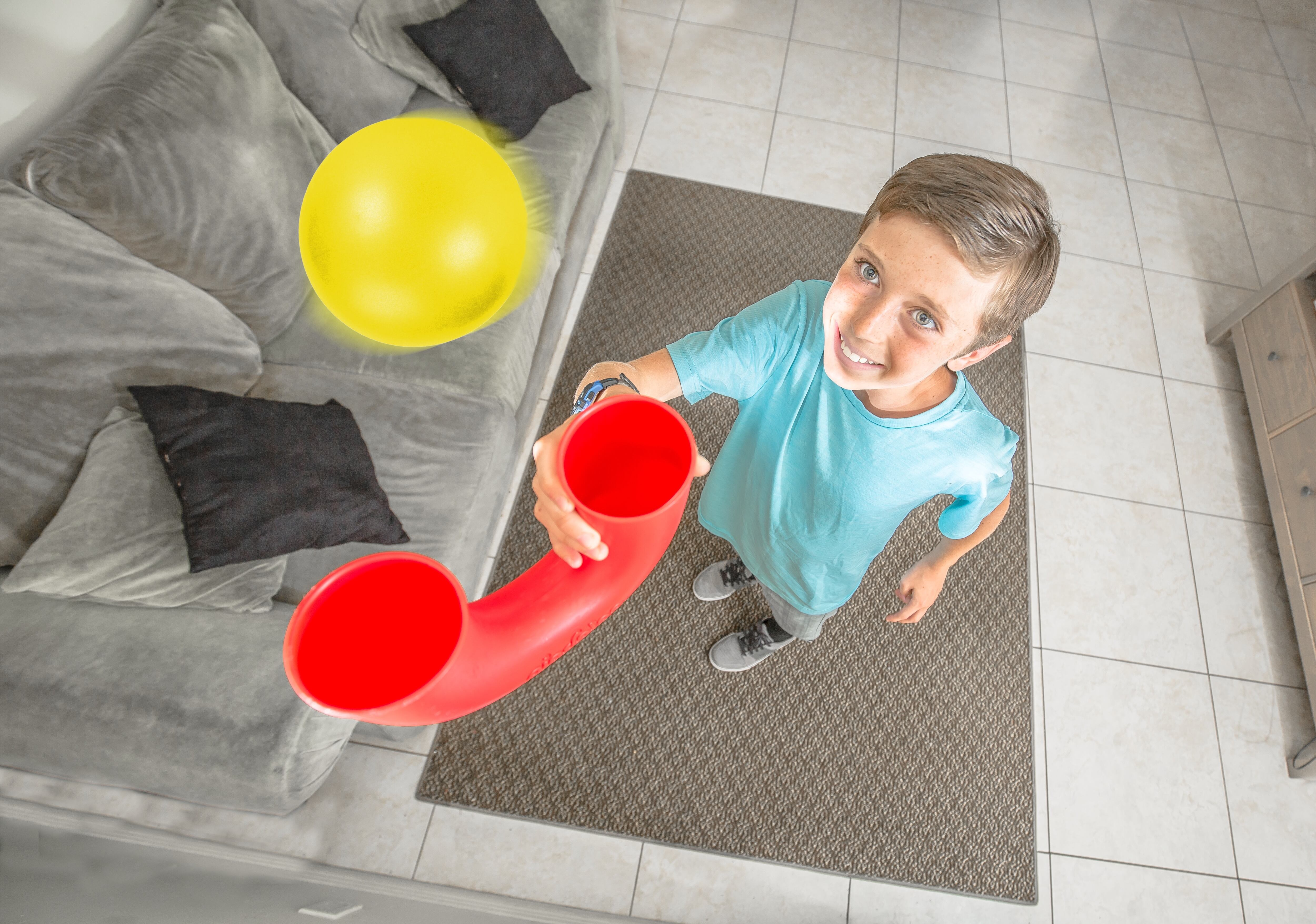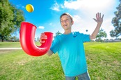 半ループ型のチューブとボールを使い、ジャグリング感覚でボールを連続でトス&ループして遊びます。とても単純で簡単そうに見えますが、一度遊び始めれば夢中になること間違いなし!